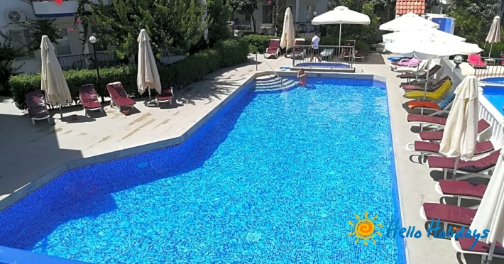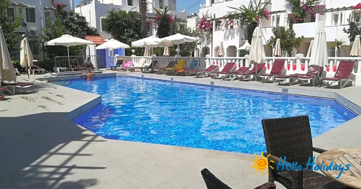 Hotelul Serhan este construit în jurul unei piscine în aer liber, intr-o zona linistita din Gümbet.