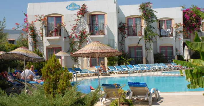 Amplasată în Bodrum, la 250 m de plaja Gumbet, Serpina Hotel este o proprietate de 3 stele care oferă o piscină în aer liber, terasă cu șezlonguri și umbrele de soare și unități de cazare cu aer condiționat. Pentru petrecerea timpului liber oaspeții au la dispoziție activități de agrement pe timpul zilei și programe de divertisment seara. Proprietatea are recepție cu program non - stop, unde clienții sunt întâmpinați cu ospitalitate în orice moment al zilei. Se oferă acces gratuit la internet Wi-fi în spațiile publice. Parcarea este disponibilă la proprietate gratuit.