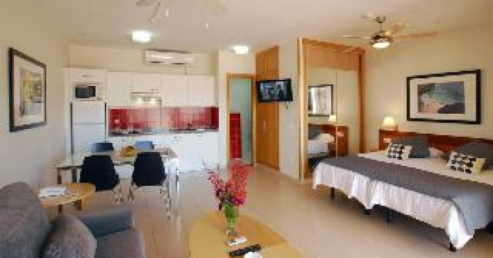 Around 900 m from a beach and approximately 1 km from the sea lies the hotel Servatur Altamadores. The nearest restaurants and bars can be found within 900 m. The city centre is around 2,5 km away. The nearest shops you can reach within around 2,5 km, a supermarket is around 900 m away. To reach the beach a shuttle is provided. The GPS-verified hotel is equipped with a reception (check-in is possible around the clock), a lobby, Wi-Fi, internet access, 5 lifts, a supermarket, cash machine, showers and changing rooms, a first aid kit, parking spaces (limited) as well as a TV lounge with satellite TV. In the outdoor area of the property you will find a seasonally heated and supervised pool (open all year), where sun loungers and sun umbrellas are available for free. There is also a separate children's pool with a non-swimming area. Furthermore, you can relax outdoors on the sun terrace. You can store your valuables in the safe (extra fee), and your luggage in the hotel`s storage room. In addition, the hotel Servatur Altamadores is video-monitored 24h a day. For the young hotel guests there is a playground. For very young guests, cots can also be provided. There is also a laundry and ironing service. The energy supply is 220 Volts. If you want to explore the holiday region, you can use the car rental service close to the hotel (extra fee). At the hotel reception, tickets are offered for excursions in the area. For guests on their honeymoon, the hotel has special offers such as a romantically-decorated room. In your hotel, a lot of focus is placed on sustainability. This includes among others the hotel`s own recycling bins. The hotel requires that all guests pay a deposit upon arrival. Euro/Master Card, Visa and EC cards are accepted as means of payment. Due to its barrier-free facilities , such as barrier-free entrances, wheelchair accessible rooms, a wheelchair accessible lift, a handrail in the elevator and wheelchair-accessible bathrooms, the hotel is also suitable for wheelchair users. Catering As catering services the hotel offers all-inclusive. Breakfast is offered from the buffet. Enjoy your lunch with starters and desserts as well as salads from the buffet. Dinner is also served as a buffet with starters, salads and desserts. Half board includes breakfast. When booking half board plus, lunch is included. As part of the all-inclusive service, international alcoholic beverages (limited) are available around the clock and at no extra charge. For the meals, there are a buffet restaurant with terrace (calorie-reduced, gluten-free and vegetarian dishes) and a bar as well as the pool bar. The drinks menu of the hotel includes water, soft drinks, coffee and tea, beer and wine. Appropriate clothing is required for lunch and dinner. Distances