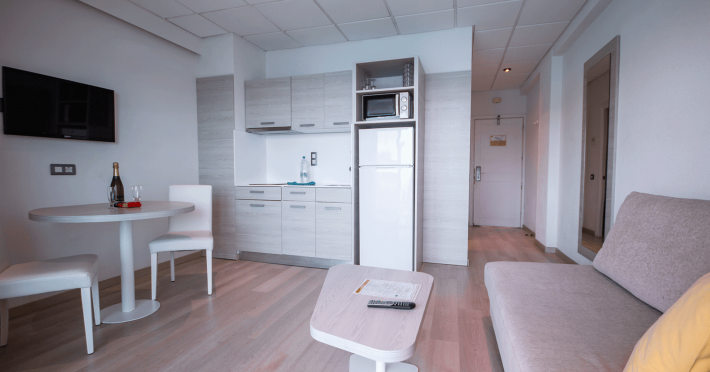 The aparthotel Servatur Green Beach is located approximately 100 m from a beach. The hotel is equipped with a 24h reception, Wi-Fi, 3 lifts, a supermarket as well as a jacuzzi. In the outdoor area of the property you will find a supervised pool. Furthermore, you can relax outdoors on the sun terrace. There is also a laundry service available at an additional cost to customers. Guests at the accommodation can get a wake-up call from the hotel personnel. At the reception, tickets are offered for excursions in the area. Catering As catering services the hotel offers half board. Dinner is served as a set meal (extras on request). Your physical well-being is catered for by the pool bar. Distances