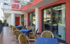 The restaurant serves fresh sea food, and has indoor and outdoor dining areas. Breakfast is a varied buffet including sweet and savoury food.