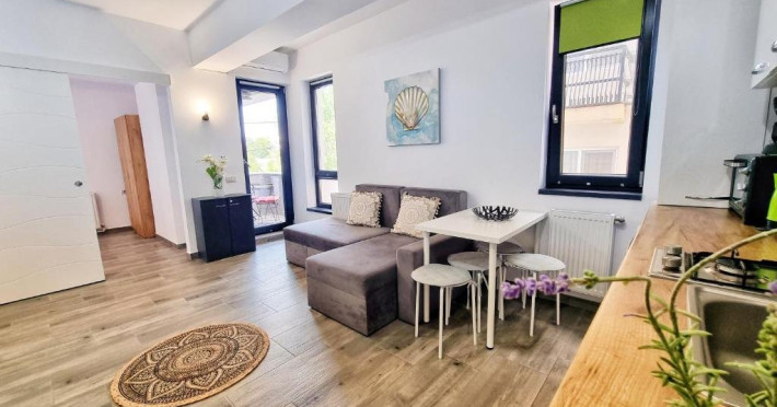 Ariana Luxury Apartament - Eforie Nord, clasificat 3 stele se gasestei in Eforie Nord, la 5 minute de mers pe jos de Plaja Mirage si la 700 m de Plaja Debarcader, si are cazare cu aer conditionat, WiFi gratuit si balcon. Proprietatea are vedere la gradina si se afla la 2,3 km de Plaja Sincai si la 15 km de Piaja Ovidiu.Acest apartament ofera 2 dormitoare, 1 baie, lenjerie de pat, prosoape, un televizor cu ecran plat, o zona de luat masa, o bucatarie complet utilata si o teras cu vedere la oras. Oaspetii pot beneficia indiferent de ora de asistenta personalului de la receptie, care vorbeste limbile engleza britanica, spaniola si romana.