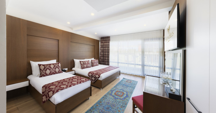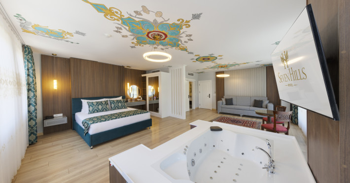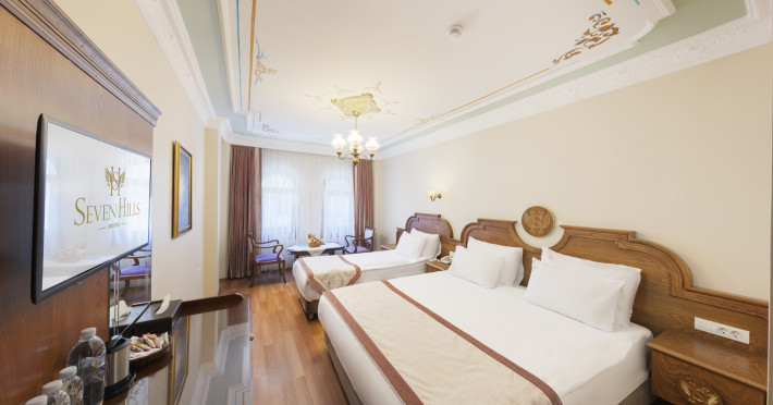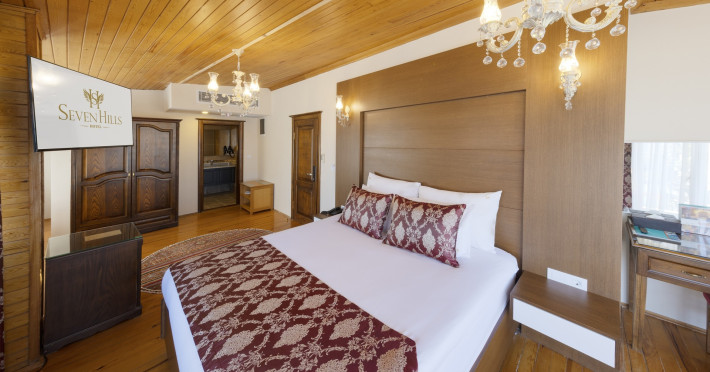 Around 25 km from a beach and approximately 1 km from the sea lies the accommodation Seven Hills Hotel. The nearest bars and restaurants are located directly next to the building. The old town is around 1 km away. A supermarket is around 1 km away. TAround 25 km from a beach and approximately 1 km from the sea lies the accommodation Seven Hills Hotel. The nearest bars and restaurants are located directly next to the building. The old town is around 1 km away. A supermarket is around 1 km away. There is a shuttle between the hotel and the airport (for a fee). The seasonally air-conditioned hotel is equipped with a 24h reception (check-in is possible around the clock), a lobby, Wi-Fi, internet access, a lift, a shop, a boutique, a first aid kit, parking spaces (limited) as well as a TV lounge with satellite TV. Furthermore, you can relax outdoors on the roof terrace. You can store your valuables in the safe, and your luggage in the hotels storage room. For very young guests, kids chairs, highchairs and cots can be provided. There is also a laundry and ironing service. Ironing equipment can also be borrowed at the hotel. For your comfort, in addition to the concierge service the hotel page will ensure you are looked after. If necessary, you can contact the medical centre at any time. Guests at the accommodation can get a wake-up call from the hotel personnel. The energy supply is 240 Volts. For conventions and other business meetings, the hotel offers a conference area with printer, scanner as well as internet access. A photographer can also be ordered from the hotel for business events. If you want to explore the holiday region, you can use the car rental service close to the hotel. For guests on their honeymoon, the hotel has special offers such as a romantically-decorated room or a basket of fruit in the room. In your hotel, a lot of focus is placed on sustainability. This includes among others a central room air-conditioning. American Express, Euro/Master Card and Visa are accepted as means of payment. Catering Breakfast is offered continental or à la carte. Enjoy your lunch as a set meal with desserts. Dinner is also served as a set meal or à la carte. When booking all-inclusive, one meal in the à la carte restaurant is included. As part of the all-inclusive service, water (24h) as well as softdrinks (24h) are available at no extra charge. In the gastronomic area also vegetarian dishes are served. The drinks menu of the hotel includes water, soft drinks, coffee and tea, beer and wine. Distances Airport: approximately at 50 km Bus stop: approximately at 1 km Cinema: approximately at 1 km Taxi rank: approximately at 1 km Port: approximately at 3 km Train station: approximately at 1 km Pharmacy: approximately at 1 km Hospital: approximately at 5 km Nearest bank: approximately at 1 km Nearest park: approximately at 1 km Sports amp; Leisure A sauna awaits you for relaxation. Spend some healthy and relaxing hours with Botox treatments. Additional information The hotel staff speak English, Spanish and Turkish.Datorita dinamicitatii domeniului disponibilitatea ofertelor se modifica de la un moment la altul. De aceea ofertele sunt valabile in limita locurilor disponibile. Agentia nu este responsabila pentru eventualele neconcordante care pot aparea intre informatiile privind tarifele si alte detalii din site si informatiile primite in agentie. In aceste cazuri vor avea prioritate, intotdeauna, informatiile primite in agentie.