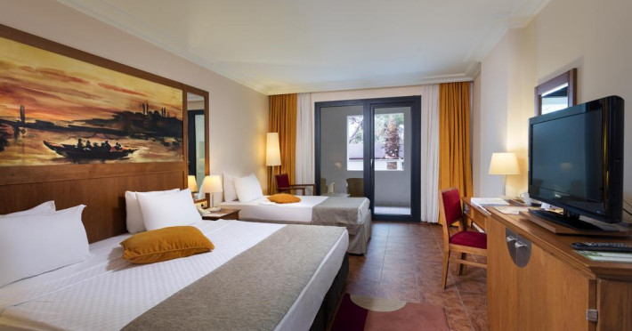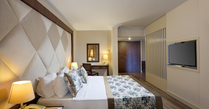 Locatie Situat la 7 km de Kemer și la 35 km de Antalya. Facilități hoteliere Restaurante și baruri Piscine, plajă Spa Activități pentru copii Sporturi și divertisment Facilități cameră (doar camere standard) Televizor LCD Balcon Parchet Aer condiționat central Seif digital Mini bar Wi-Fi Uscător de păr Tipuri de camere Rezidență - Cameră standard cu vedere la mare Rezidență - Cameră familială Rezidență - Cameră superioară Bungalou - Cameră familială Suite familială Toate mesele incluse Băuturi alcoolice și non-alcoolice incluse Serviciu de snack-uri și înghețată Restaurante și baruri Restaurant principal Restaurante A'la Carte (italian, kebab, pește) Baruri în diferite locații Divertisment și activități Programe pentru copii Muzică live și discotecă Sporturi și jocuri acvatice Activități pentru adolescenți Spa și wellness Saună, baie turcească Masaje și tratamente Sală de fitness cu instructor Piscine și plajă Piscine interioare și exterioare Plajă privată cu intrare în mare cu pietre 3 tobogane de apă pentru copii Servicii suplimentare Închiriere de mașini Serviciu de spălătorie și curățătorie Servicii medicale disponibile Activități și excursii suplimentare contra costLocalizare