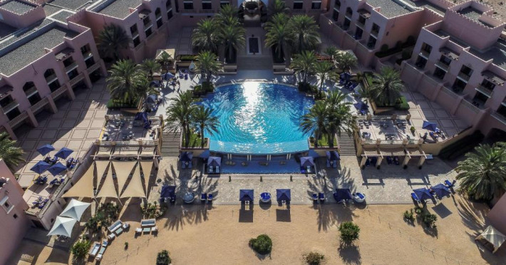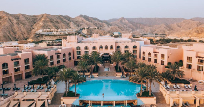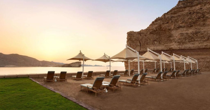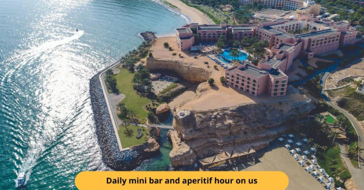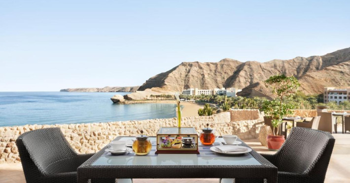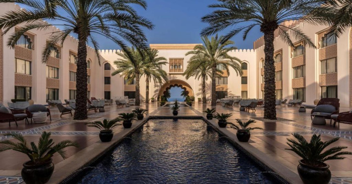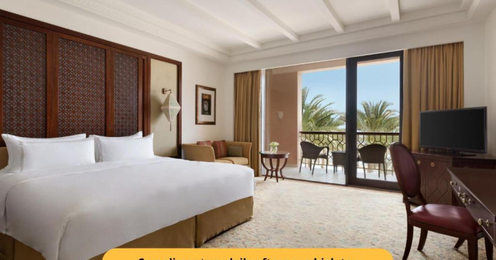 Cele 180 de camere și apartamente spațioase, impodobite cu opere de artă autentice din Oman, sunt inspirate de palatele arabe. Fiecare cameră are un balcon și vederi uimitoare la mare sau la piscină, ceea ce o face locul perfect pentru relaxare și reincărcare. Toți oaspeții cazați la complex se bucură de un minibar aprovizionat zilnic, ceai de după-amiază și oră de aperitiv seara ca parte a beneficiilor lor exclusive.