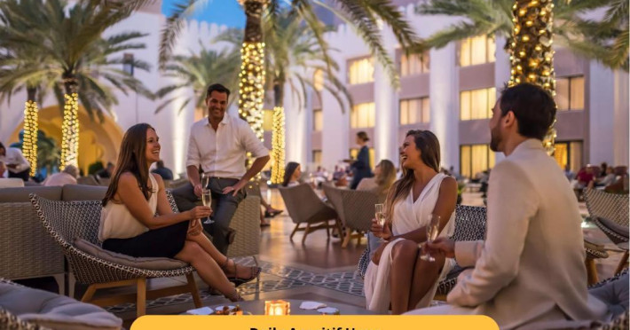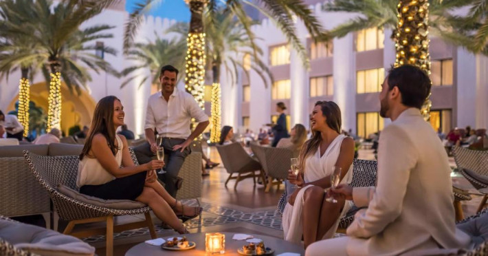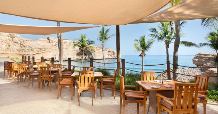 Stațiunea găzduiește două restaurante rafinate: Sultanah, care oferă preparate din bucătăria mediteraneană și Aangan by Rohit Ghai, un loc cu stele Michelin, cu o interpretare modernă a bucătăriei indiane contemporane. Oaspeții au, de asemenea, acces la două plaje și baruri la piscină: Mahhara și Al Muheet in timpul zilei.
