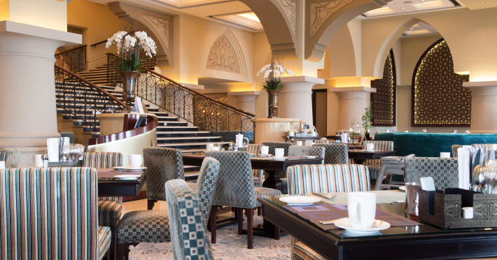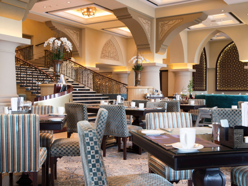The Lobby Lounge atShangri-La Qaryat Al Beri combines chic Arabian-inspired décor with a selectionof rich pastries and premium coffees. Ideal for a casual gathering, guests cansavor authentic Middle Eastern flavors or indulge in classic afternoon tea.Open daily from 7 AM to midnight, this non-smoking lounge provides asophisticated atmosphere for relaxation.
