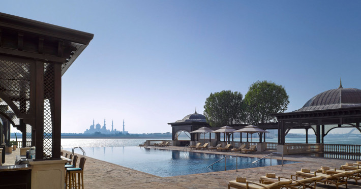 Theswimming pool at Shangri-La Hotel, Qaryat Al Beri, Abu Dhabi, is a tranquiloasis surrounded by elegant landscaping and stunning water views. Featuring aspacious deck with comfortable loungers and a designated children's area, itinvites guests to relax and unwind while enjoying refreshing swims andcocktails from the poolside bar.