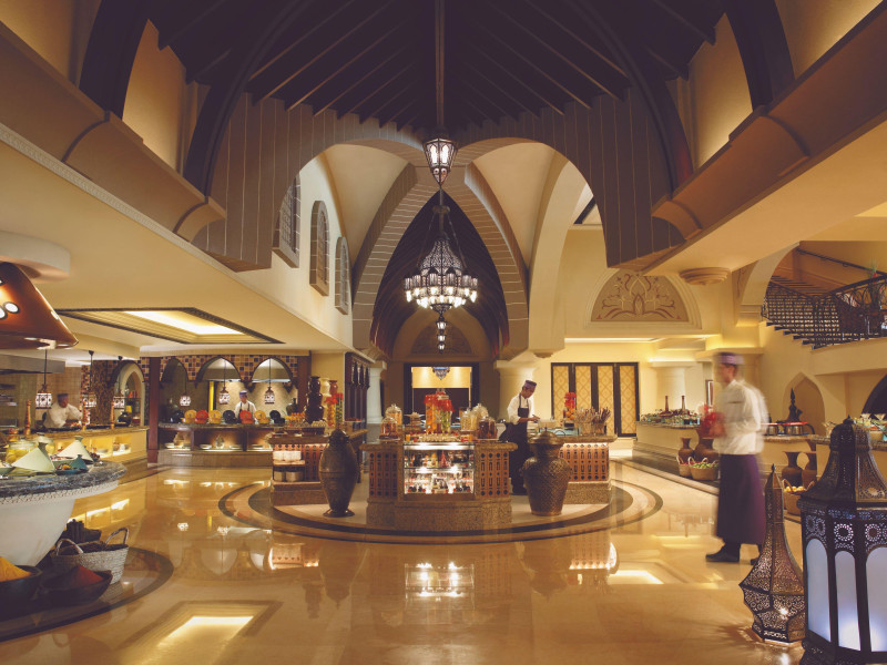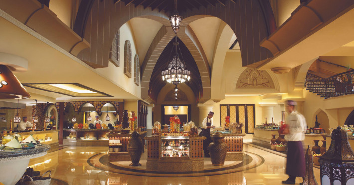 Sofrabld at Shangri-La Qaryat Al Beri offers a vibrant dining experience whereMiddle Eastern and Asian cuisines unite. Featuring multiple live-cookingstations, guests can interact with chefs while enjoying an extensive buffet forbreakfast, lunch, and dinner. The atmosphere reflects an authentic soukexperience, making it perfect for casual dining. This culinary haven invitesdiners to relish a diverse range of dishes in a relaxed setting.