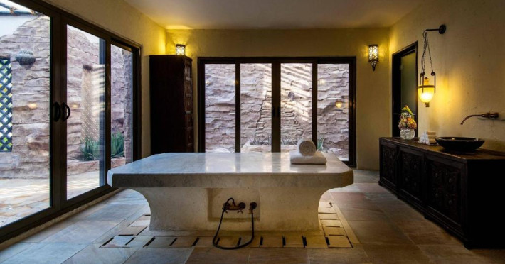 Centrul spa cu suprafața de 6500 mp pune la dispoziție o ofertă generoasă de terapii cosmetice și masaje. Oaspeții se pot relaxa pe șezlongurile confortabile din zona de relaxare iluminată cu felinare sau la hamam și saună. De asemenea, hotelul oferă o piscină umbrită pentru copii, o grădină și activități zilnice pentru copii la Ritz Kids Club.