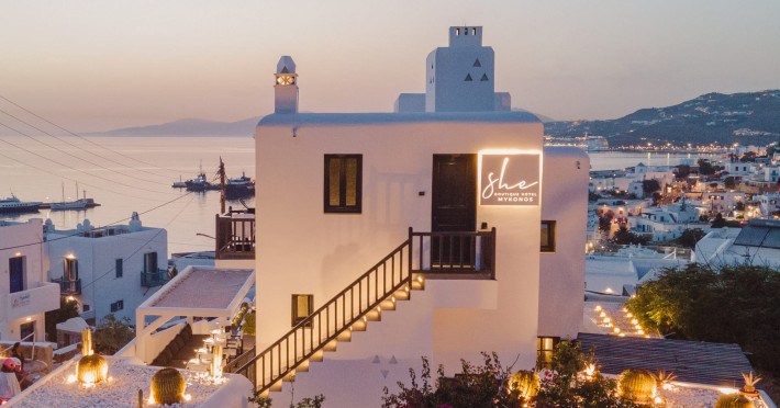 She Mykonos Boutique Hotel is located in Mykonos Town, a short 4-minute walk from the city center, the Little Venice, as well as just a breath away from the famous Windmills. It is featuring free WiFi in all areas, an outdoor swimming pool, massage services, and an all-day restaurant. Each of the elegant rooms is air-conditioned and includes a seating area, a flat-screen TV with satellite channels, and furnished private balconies. All units in the hotel are equipped with a hair dryer and ironing facilities. Molton Brown toiletries can be found in the private bathroom. Guests are greeted with a welcome drink and wake up to a rich a la carte breakfast that is served daily. Services that can be enjoyed at the hotel include massages, hair, beauty, and facial treatments.The restaurant of the hotel serves Mediterranean cuisine created from fresh Greek products. At the same time, the lobby bar, overlooking the Aegean sea and is the perfect spot to enjoy a signature cocktail.The poolside area offers lounge-style sunbeds and refreshing drinks. Other options include a snack bar. In-room dining is also available upon request.The hotel’s front desk can arrange babysitting and laundry service, or transfers. The concierge team is also available 24/7 to help with any possible request during the stay of the guest. Mykonos airport or port is only a 15-minute drive away. On-site parking is also available at an extra cost.She Mykonos Boutique Hotel is located in Mykonos Town, a short 4-minute walk from the city center, the Little Venice, as well as just a breath away from the famous Windmills. It is featuring free WiFi in all areas, an outdoor swimming pool, massage services, and an all-day restaurant. Each of the elegant rooms is air-conditioned and includes a seating area, a flat-screen TV with satellite channels, and furnished private balconies. All units in the hotel are equipped with a hair dryer and ironing facilities. Molton Brown toiletries can be found in the private bathroom. Guests are greeted with a welcome drink and wake up to a rich a la carte breakfast that is served daily. Services that can be enjoyed at the hotel include massages, hair, beauty, and facial treatments.The restaurant of the hotel serves Mediterranean cuisine created from fresh Greek products. At the same time, the lobby bar, overlooking the Aegean sea and is the perfect spot to enjoy a signature cocktail.The poolside area offers lounge-style sunbeds and refreshing drinks. Other options include a snack bar. In-room dining is also available upon request.The hotel’s front desk can arrange babysitting and laundry service, or transfers. The concierge team is also available 24/7 to help with any possible request during the stay of the guest. Mykonos airport or port is only a 15-minute drive away. On-site parking is also available at an extra cost.