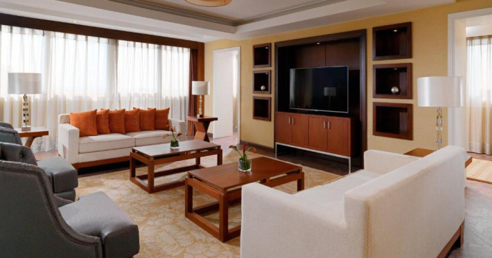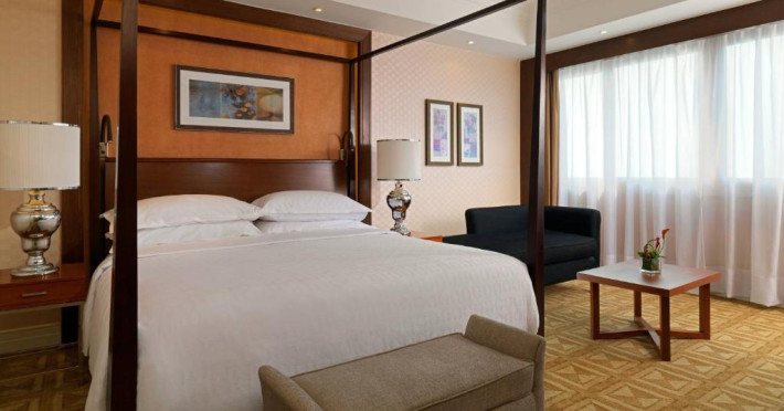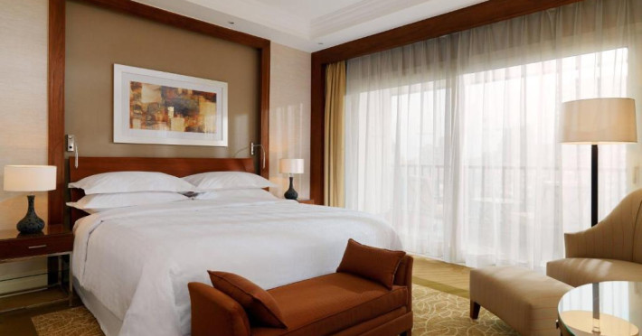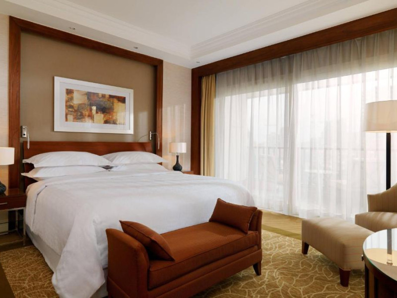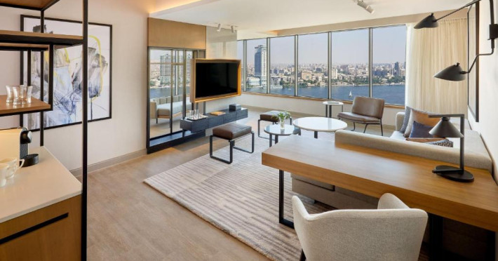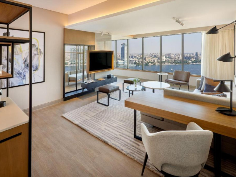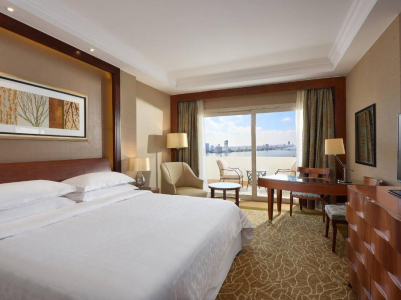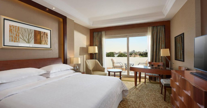 Dotate cu mobilier din lemn și decorate cu lenjerie de pat din bumbac egiptean 100%, camerele spațioase de la hotelul Sheraton Cairo includ o zonă de relaxare cu canapea. Televizoarele cu ecran plat cu canale prin satelit sunt facilități standard.