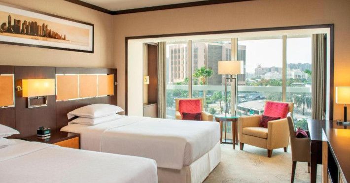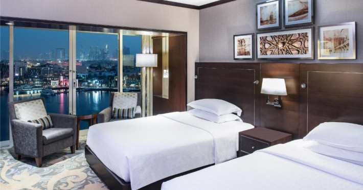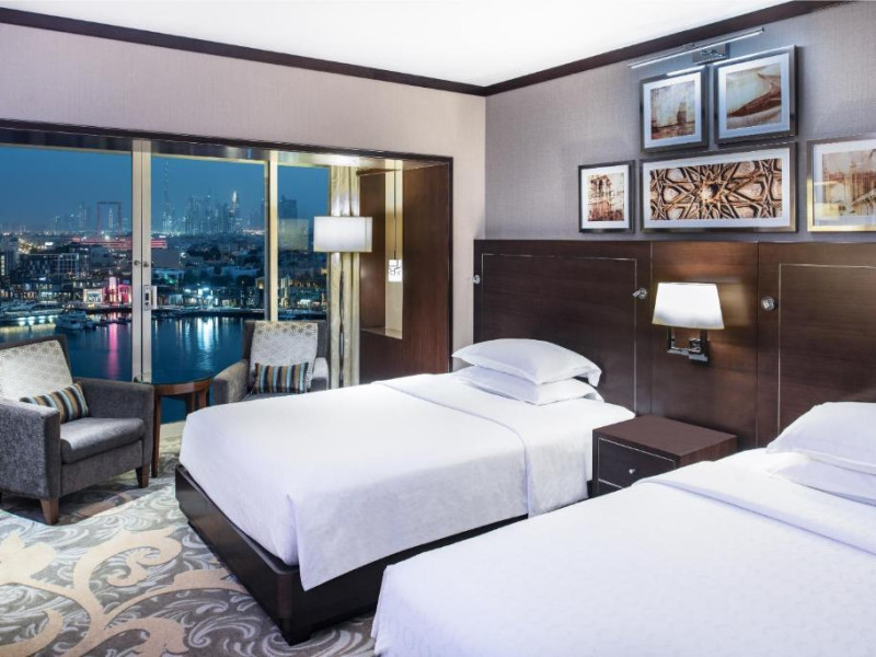 Overlooking the famous Dubai Creek, the Sheraton Dubai Creek Hotel & Towers is just a short walk from the city’s main commercial and shopping districts. Pay a visit to the nearby Dubai Creek Golf & Yacht Club or Gold and Spice Souks. Just seven kilometers from the Dubai International Airport, we are conveniently located no matter what your reason for travel.Spread out in one of our 262 spacious guest rooms and suites, offering five-star comforts. Take in uninterrupted views of the Dubai Creek or the city. Request a room on one of our Club floors and enjoy exclusive benefits.Our conference and banquet facilities are a great choice for your next event with flexible meeting space ready to welcome 10 to 500 people. After a long day of work or exploration, dive into our outdoor pool or reenergize with Sheraton Fitness Programmed by Core Performance®.Gather everyone together to enjoy a wide range of cuisines at our restaurants. Try our authentic dining experiences and enjoy Japanese, Indian, international, and Italian dishes.Overlooking the famous Dubai Creek, the Sheraton Dubai Creek Hotel & Towers is just a short walk from the city’s main commercial and shopping districts. Pay a visit to the nearby Dubai Creek Golf & Yacht Club or Gold and Spice Souks. Just seven kilometers from the Dubai International Airport, we are conveniently located no matter what your reason for travel.Spread out in one of our 262 spacious guest rooms and suites, offering five-star comforts. Take in uninterrupted views of the Dubai Creek or the city. Request a room on one of our Club floors and enjoy exclusive benefits.Our conference and banquet facilities are a great choice for your next event with flexible meeting space ready to welcome 10 to 500 people. After a long day of work or exploration, dive into our outdoor pool or reenergize with Sheraton Fitness Programmed by Core Performance®.Gather everyone together to enjoy a wide range of cuisines at our restaurants. Try our authentic dining experiences and enjoy Japanese, Indian, international, and Italian dishes.