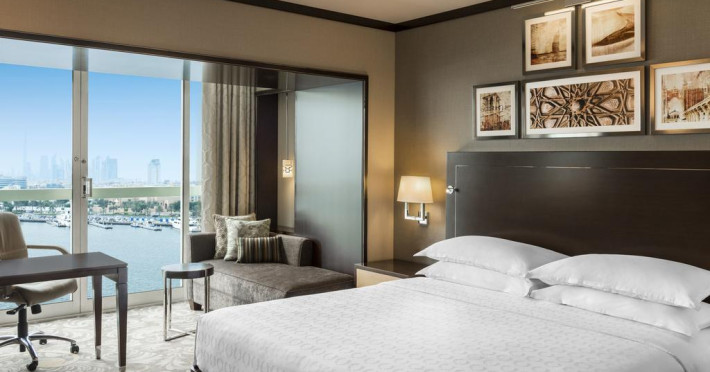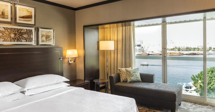 Combinând stilul și tehnologia, camerele oferă o odihnă perfectă cu Sheraton Signature Bed®. Plafoanele de înălțime a ferestrelor înseamnă că există o mulțime de lumină în timpul zilei făcând o cameră cu o priveliște spre Creek mai plăcută. Vederea la Creek sau vizualizarea orașului Acces gratuit la internet Wi-Fi. Pat king-size sau două paturi de o persoană.Toate camerele de la Sheraton Dubai Creek Hotel & Towers au TV LCD cu DVD player și canale prin satelit.