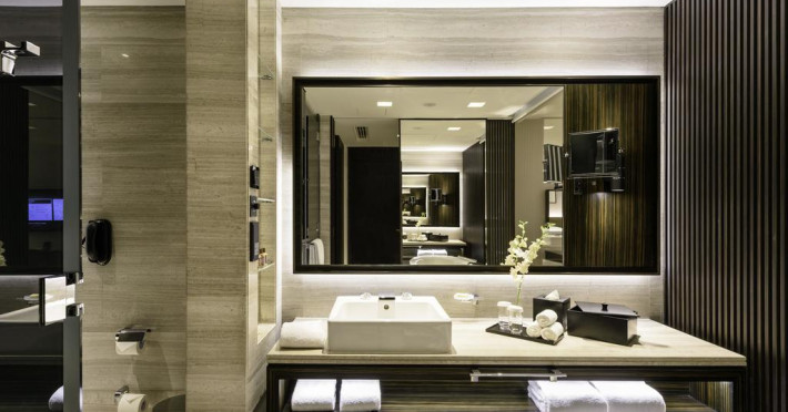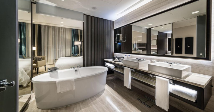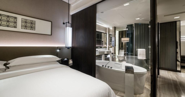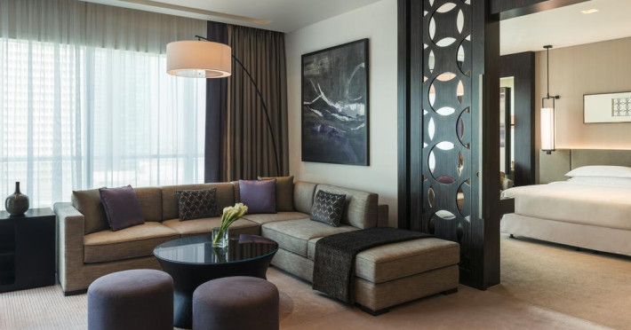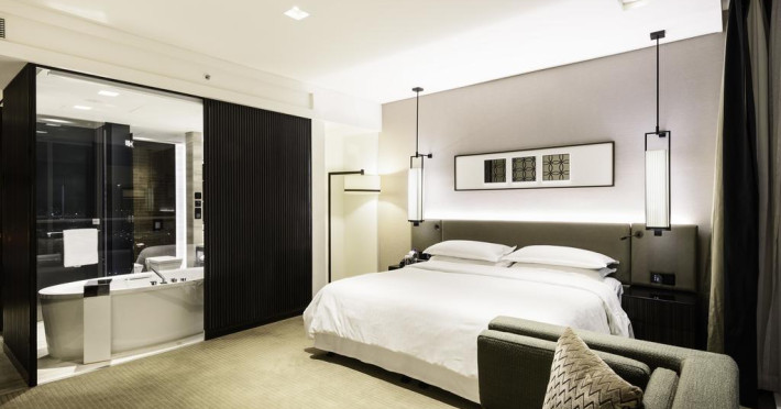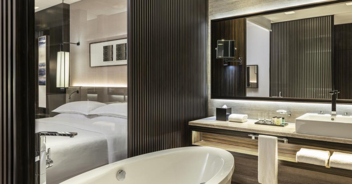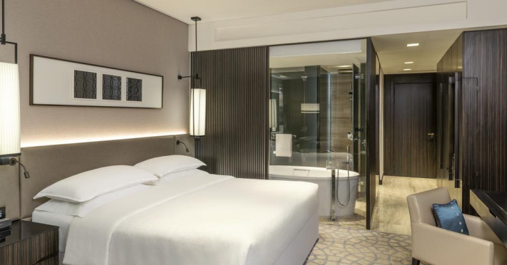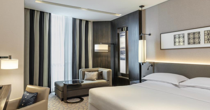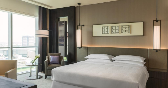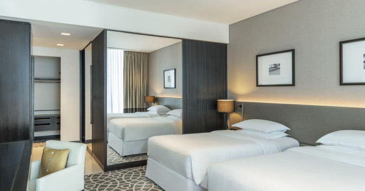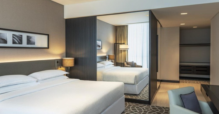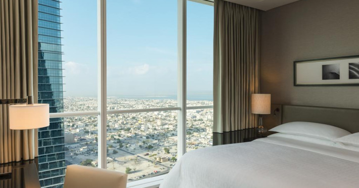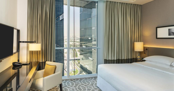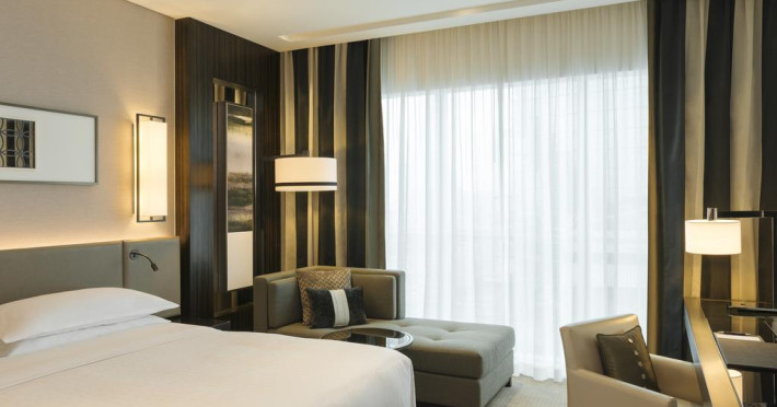 Camerele confortabile de la Sheraton Grand Hotel au pardoseală de gresie/ marmură, aer condiționat, Tv cu canale prin satelit și seif. Oaspeții au la dispoziție serviciul de room service pentru a servi masa sau diverse băuturi. Oaspeții au acces gratuit la serviciul Wi-fi în camere. În camere există baie cu cadă sau duș ce are în dotare foehn și articole de toaletă gratuite. Curățenia in cameră se face zilnic. Proprietatea oferă camere pentru familie cu o suprafață mai mare și un număr mai mare de paturi față de cele standard.