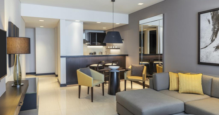 Sheraton Grand Hotel este o proprietate de 5 stele care se află în Dubai și oferă piscină în aer liber, terasă cu șezlonguri și umbrele de soare, precum și centru spa/wellness care asigură servicii pentru un sejur extrem de relaxant. Facilitățile de la Sheraton Grand Hotel includ sală de fitness și business center. Proprietatea are, de asemenea, servicii de recepție cu program non - stop și concierge. Se oferă acces gratuit la internet Wi-fi în spațiile publice.
