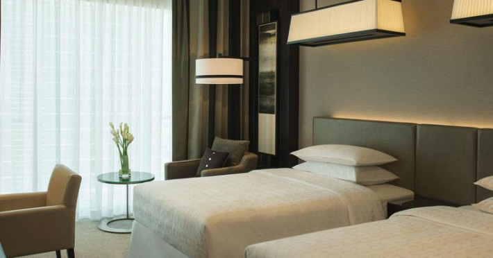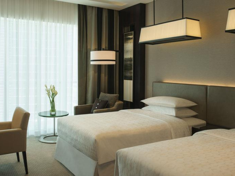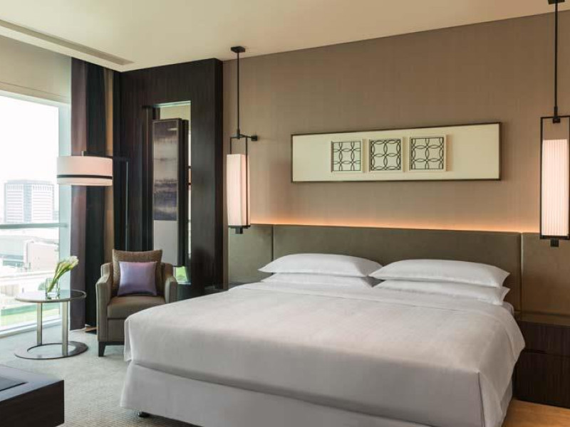 Located at the forefront of Dubai’s most prominent thoroughfare, the Sheraton Grand Hotel, Dubai seamlessly connects to the heart of the booming business district. Our hotel is just across from the Dubai World Trade Centre and within walking distance of the Dubai Convention Centre. A short drive will take you to DIFC, Dubai Mall, or downtown, and Dubai International Airport (DXB) is 10 kilometers away.Standing 54 stories tall, the hotel comprises 474 guest rooms and suites, as well as 180 one- to three-bedroom serviced apartments. All accommodations feature the Sheraton Sweet Sleeper® Bed, a 42-inch LCD flat screen TV, and Nespresso® machines. Club Room guests enjoy exclusive access to the Sheraton Club Lounge, which has extensive services and exciting 31st-floor views. Whether you are relaxing with family and friends or attending a business or social event, our hotel provides the comforts you deserve for an unforgettable stay. In our spacious lobby’s Link@Sheraton(SM) experienced with Microsoft®, connect to home and the office on one of our terminals, bring your laptop for wireless High Speed Internet Access, or socialize with your fellow guests. Make time for a good workout in our Sheraton Fitness center. Swim laps in the outdoor pool on our top floor. And treat yourself to a therapeutic session at our Shine Spa for Sheraton. Gather with colleagues, friends, or family over delicious meals in our all-day dining venue, one of four specialty outlets, or our poolside restaurant. Socialize over coffee in the Lobby Lounge. Or enjoy our 24-hour in-room dining in the comfort of your guest room, suite, or apartment. Our expansive conference center boasts meeting rooms with natural illumination and state-of-the-art audiovisual technology. The business center provides support services.Located at the forefront of Dubai’s most prominent thoroughfare, the Sheraton Grand Hotel, Dubai seamlessly connects to the heart of the booming business district. Our hotel is just across from the Dubai World Trade Centre and within walking distance of the Dubai Convention Centre. A short drive will take you to DIFC, Dubai Mall, or downtown, and Dubai International Airport (DXB) is 10 kilometers away.Standing 54 stories tall, the hotel comprises 474 guest rooms and suites, as well as 180 one- to three-bedroom serviced apartments. All accommodations feature the Sheraton Sweet Sleeper® Bed, a 42-inch LCD flat screen TV, and Nespresso® machines. Club Room guests enjoy exclusive access to the Sheraton Club Lounge, which has extensive services and exciting 31st-floor views. Whether you are relaxing with family and friends or attending a business or social event, our hotel provides the comforts you deserve for an unforgettable stay. In our spacious lobby’s Link@Sheraton(SM) experienced with Microsoft®, connect to home and the office on one of our terminals, bring your laptop for wireless High Speed Internet Access, or socialize with your fellow guests. Make time for a good workout in our Sheraton Fitness center. Swim laps in the outdoor pool on our top floor. And treat yourself to a therapeutic session at our Shine Spa for Sheraton. Gather with colleagues, friends, or family over delicious meals in our all-day dining venue, one of four specialty outlets, or our poolside restaurant. Socialize over coffee in the Lobby Lounge. Or enjoy our 24-hour in-room dining in the comfort of your guest room, suite, or apartment. Our expansive conference center boasts meeting rooms with natural illumination and state-of-the-art audiovisual technology. The business center provides support services.