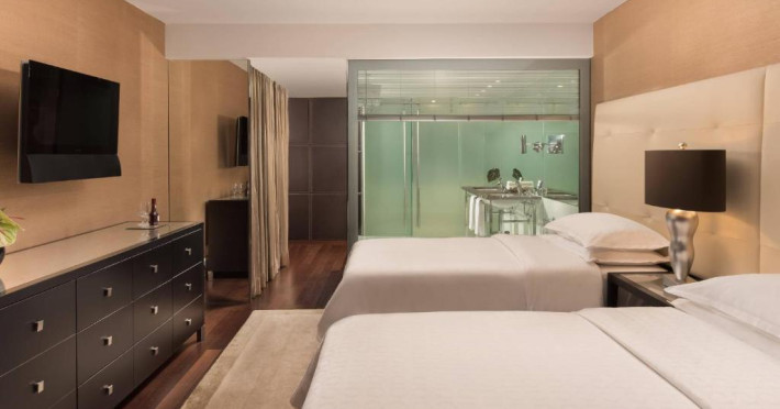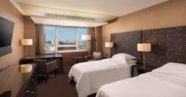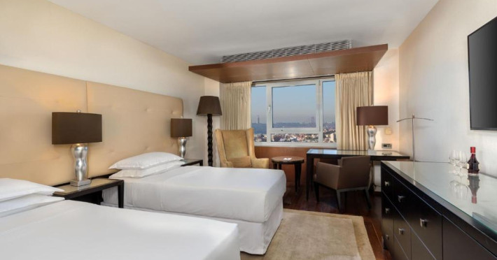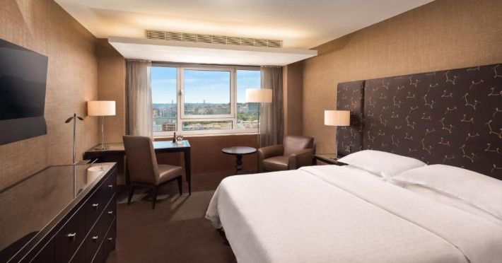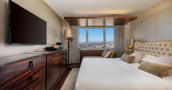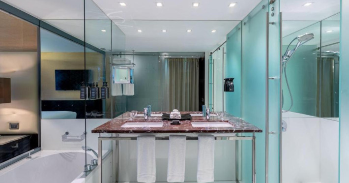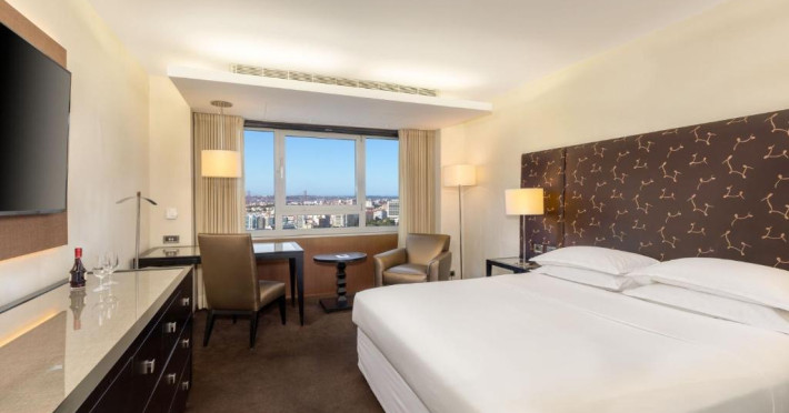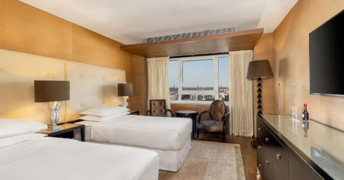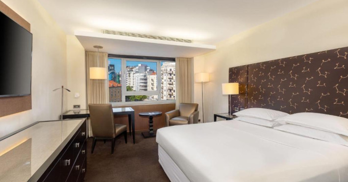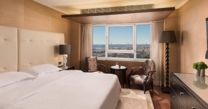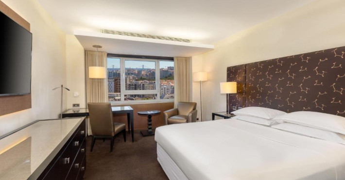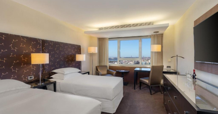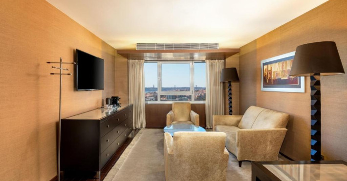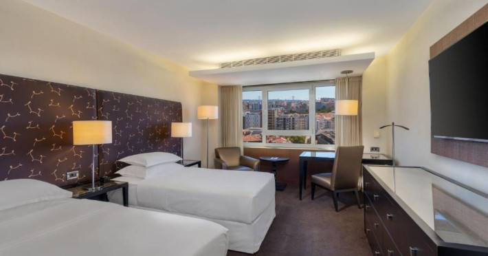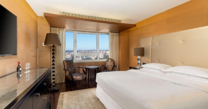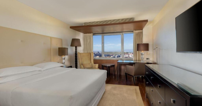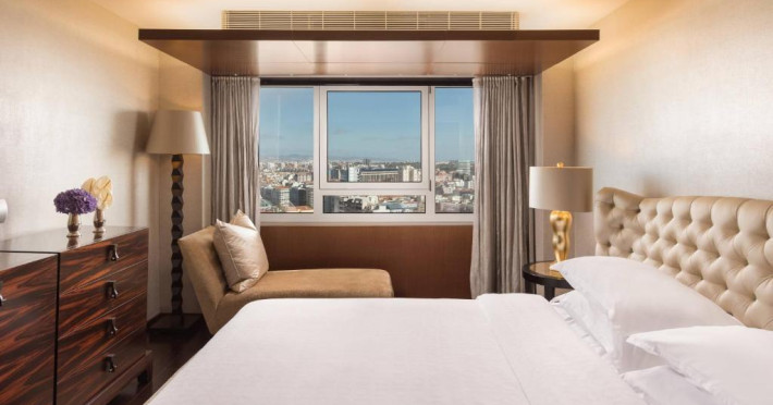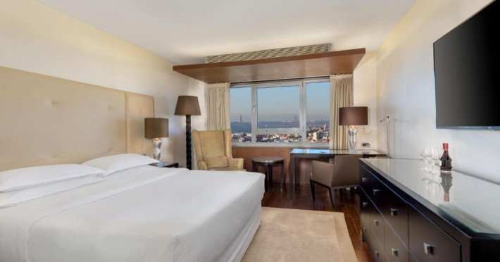 Camerele elegante ale Hotelului Sheraton Lisboa sunt spațioase și bine dotate cu aer condiționat, băi de designer cu pereți de sticlă și televizoare LCD.