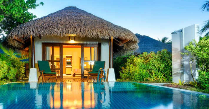 Acest complex premiat, de 5 stele are o gamă largă de unități de cazare, de la camere Deluxe cu grădină și căsuțe frumoase pe plajă la vile elegante și suite mari, cu 2 dormitoare, situate deasupra apei.