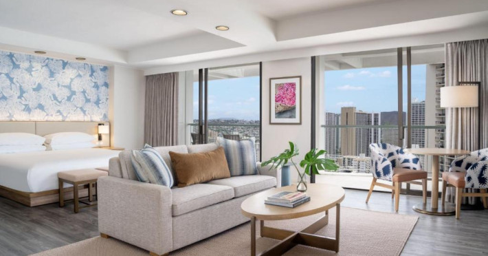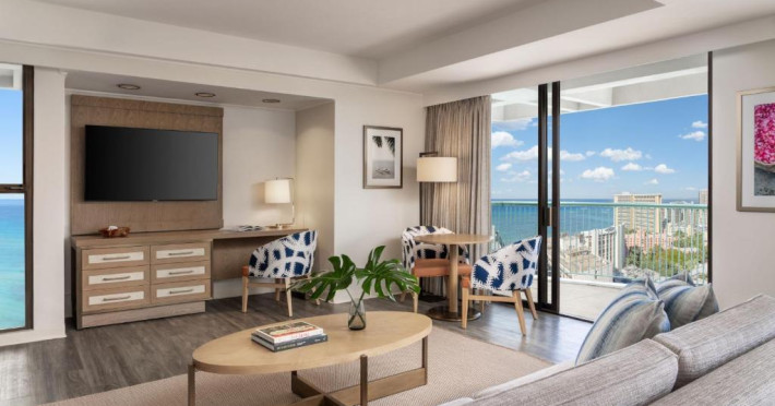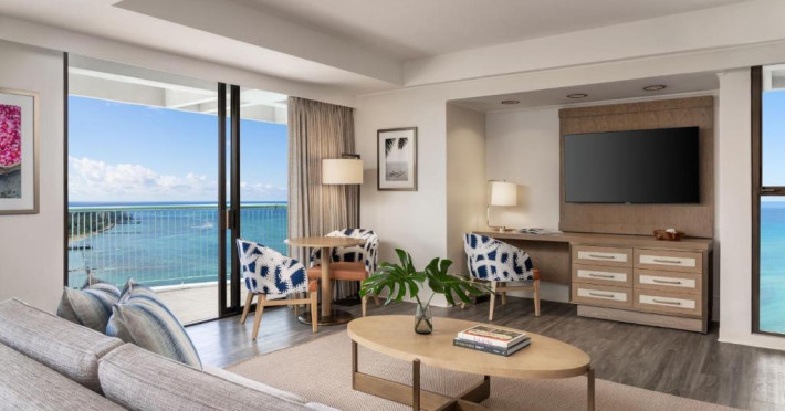 Dispunand de turnul Ainahau recent renovat, cu 664 de camere și apartamente junior renovate atent, aceste camere au fost modernizate cu iluminare reimprospătată, o bancă modernă cu tapițerie personalizată și o paletă de culori liniștită, inspirată de coastă, cu nuanțe de papaya, mocha și cer. albastru. Bucurați-vă de priveliști spectaculoase ale oceanului și orizontului dintr-un lanai privat.