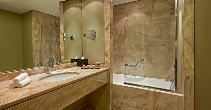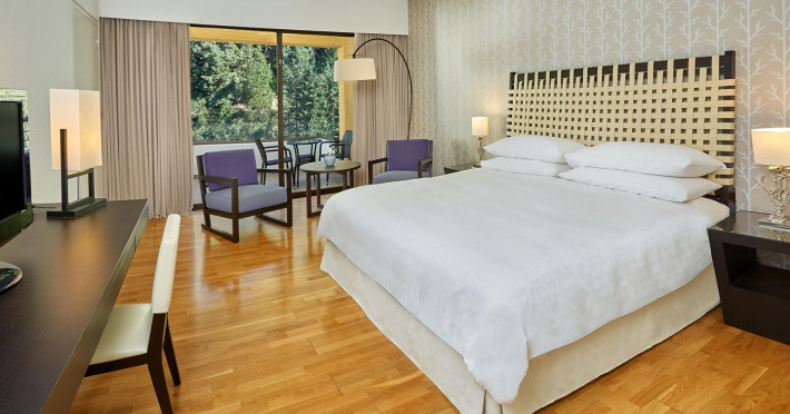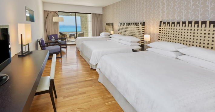 Camerele standard (aprox. 33 mp) au o capacitate maxima de 3 persoane, au vedere la munte si ofera urmatoarele facilitati: aer conditionat, seif, TV satelit, facilitati pentru prepararea ceaiului si a cafelei, minibar (contra cost), frigider, papuci si halate de baie, uscator de par, prosoape de plaja, internet wireless (cu plata), balcon, baie cu cada sau dus. Camerele superior sunt cu vedere la mare si au aceeasi suprafata si facilitati ca in camera standard. Camerele deluxe au vedere la mare si sunt situate la etajele superioare (suprafata si facilitatile sunt aceleasi ca in camera standard). Camera family (aprox. 40 mp) are o capacitate maxima de 4 persoane (2 adulti + 2 copii sau 3 adulti + 1 copil), este compusa dintr-un singur spatiu de cazare cu un pat dublu si doua paturi single si are vedere la mare sau la munte.