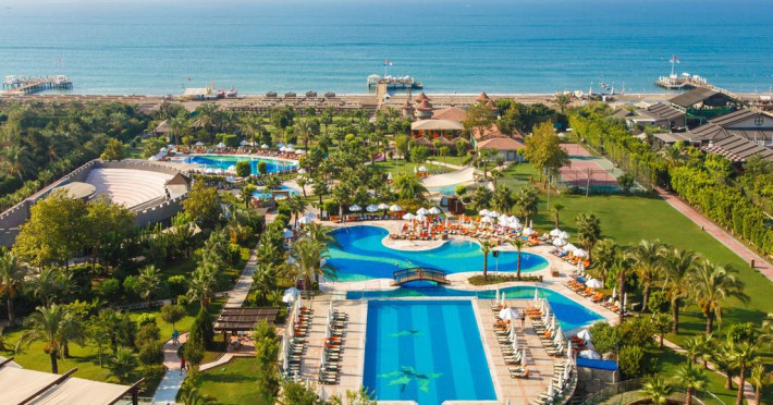 SPORT SI DIVERTISMENT: Opt piscine exterioare pentru adulti si copii, piscina interioara atat pentru adulti cat si pentru copii, aqua park cu tobogane (7 pentru adulti si 3 pentru copii), centru fitness, baie turceasca, sauna, Jacuzzi, baie de abur, terenuri de tenis, baschet, volei de plaja, tenis de masa, sporturi nautice nemonotorizate. Contra cost: nocturna pentru terenurile de tenis si echipamentul, bowling, biliard, masaj si peeling, centru SPA si de infrumusetare, sporturi nautice motorizate.