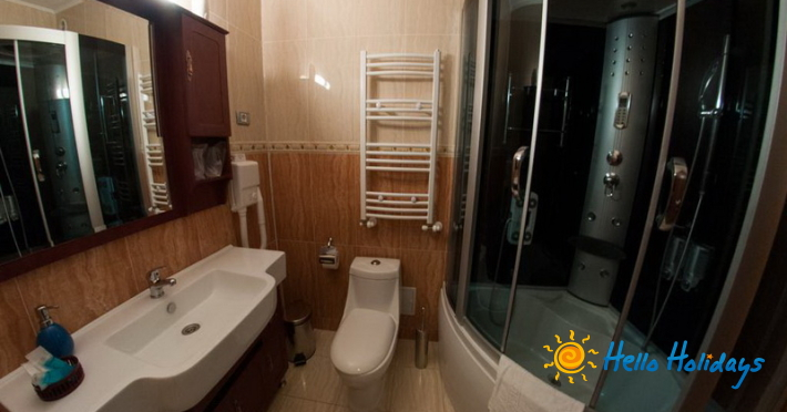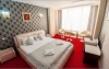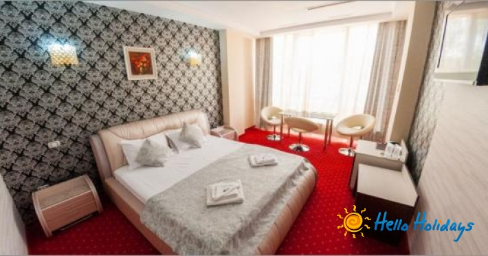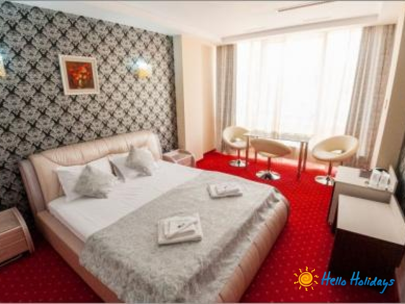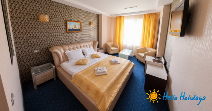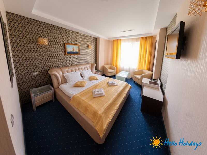 Camerele duble cu vedere la promenada pe Strada Trandafirilor - strada principala din Statiunea Neptun, au perete cortina, suprafata de 20mp, design unic pentru fiecare camera, aer conditionat, minibar. Paturile sunt tapitate cu piele naturala si au dimensiunile saltelei de180x200cm. Peretii sunt tapetati in totalitate cu tapet modern. Baile moderne si spatioase au in dotare cazi cu hidromasaj, aparat radio, mobiler din lemn de stejar.