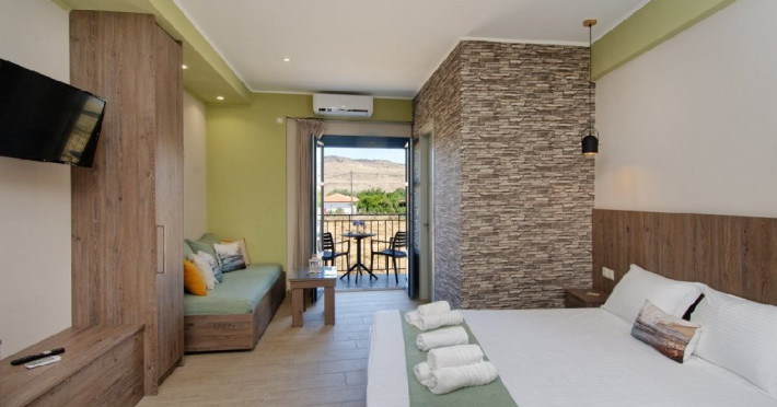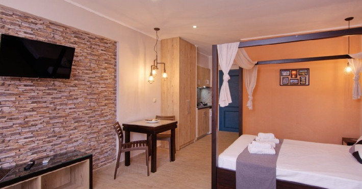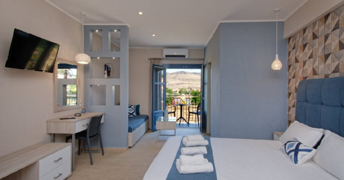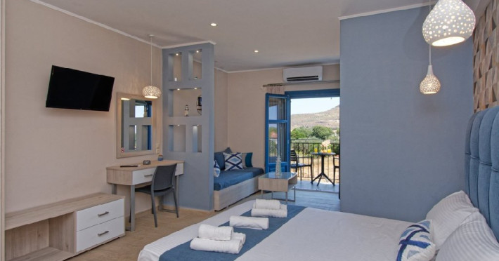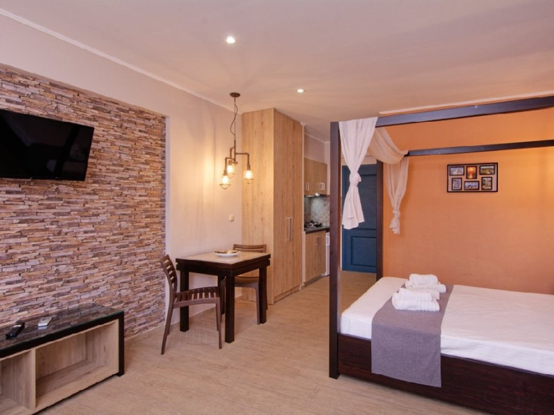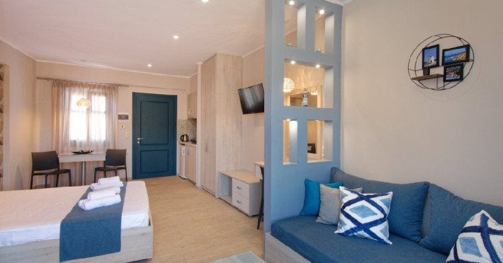 Camerele sunt de tip studio sau apartament, cu chicineta utilata si balcon sau terasa. Toate unitatile sunt dotate cu aer conditionat, baie privata cu dus, televizor, frigider, plita / aragaz sau masa de gatit, aparat de cafea/ceai si ustensile de baza.