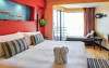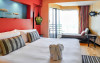 - Deluxe (aprox. 33 m2): camere pentru 2 persoane cu posibilitate de pat suplimentar, baie cu uscator de par, aer conditionat, TV satelit inclusiv canale contra cost, minibar contra cost, fierbator, telefon, balcon sau terasa