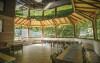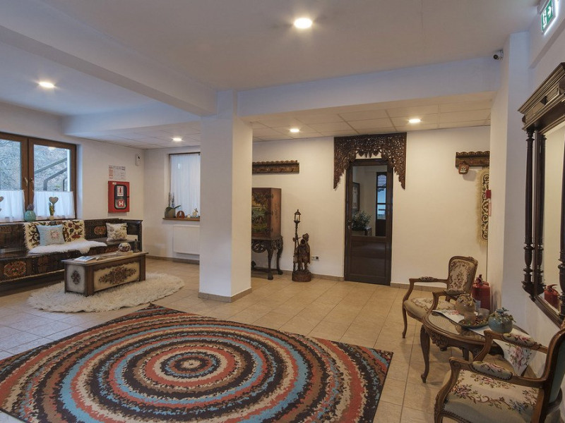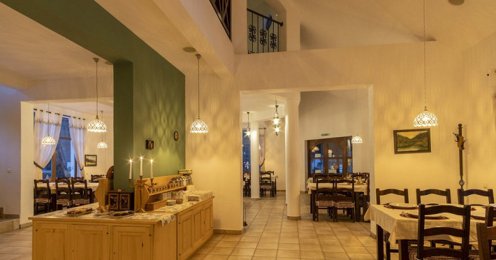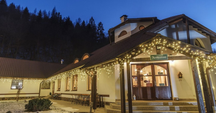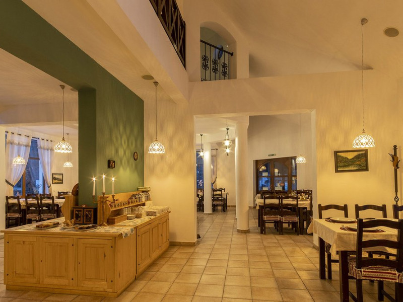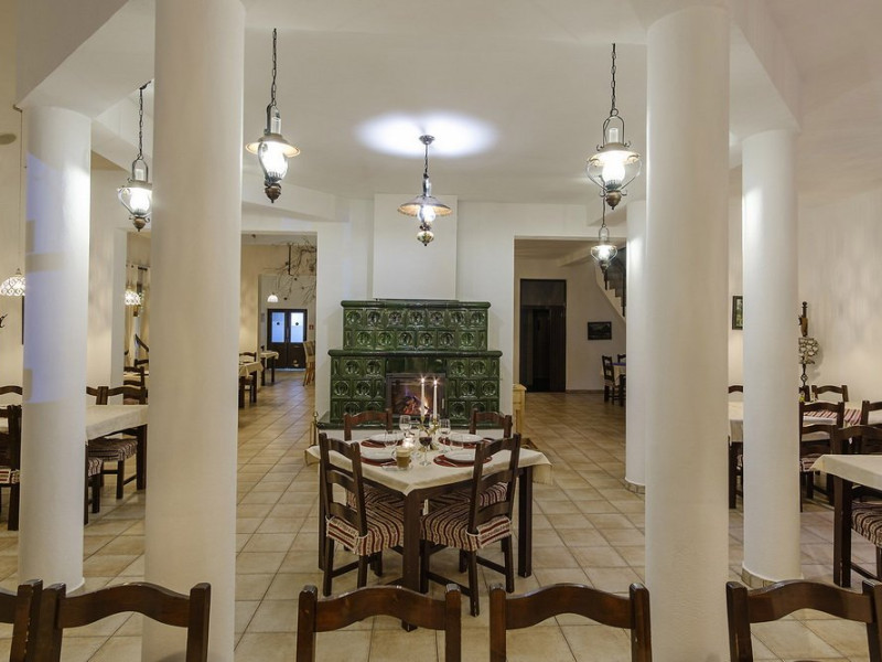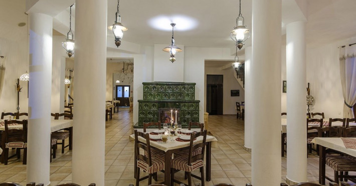 Restaurantul este construit la distanta de corpul de cazare si cel de bucatarie, asigurandu-se astfel confort celor cazati, dand de asemenea posibilitatea celor veniti sa se distreze sa o faca, fara grija ca ar putea deranja. In incinta restaurantului se afla un bar cu bauturi romanesti si internationale.