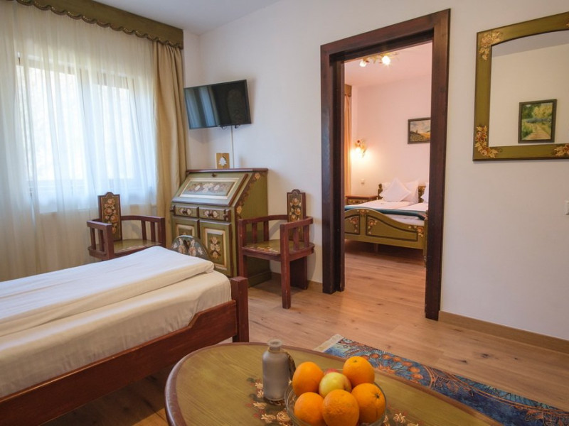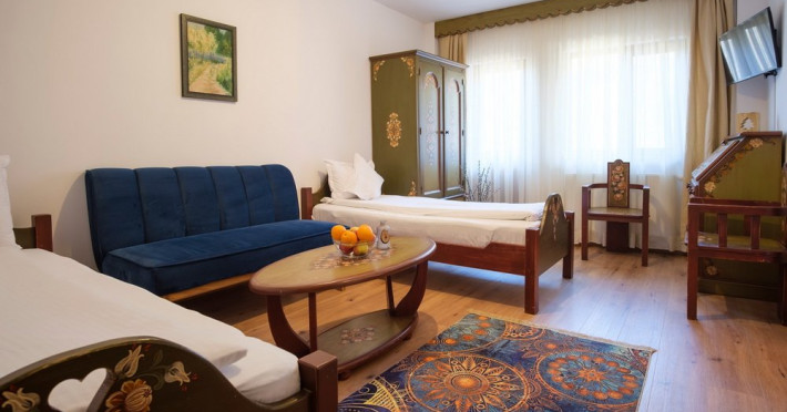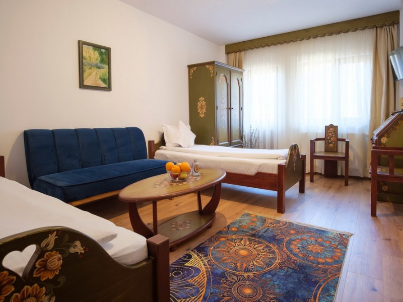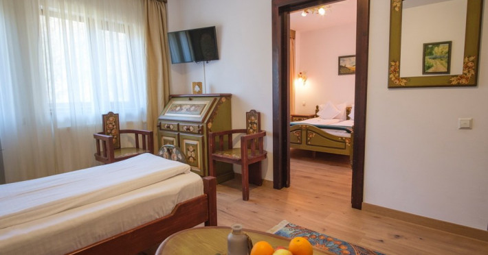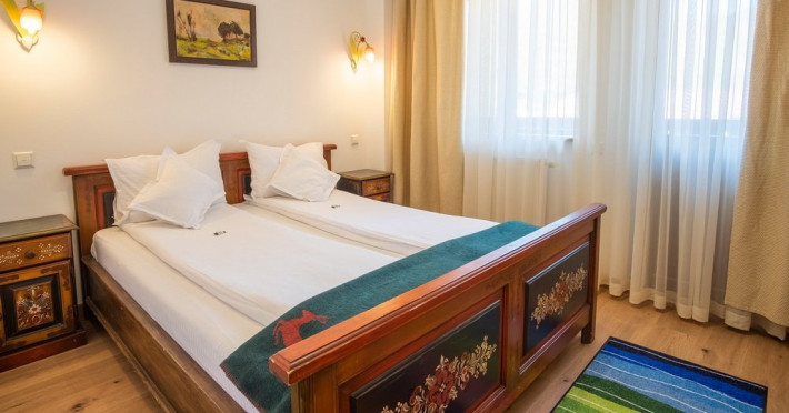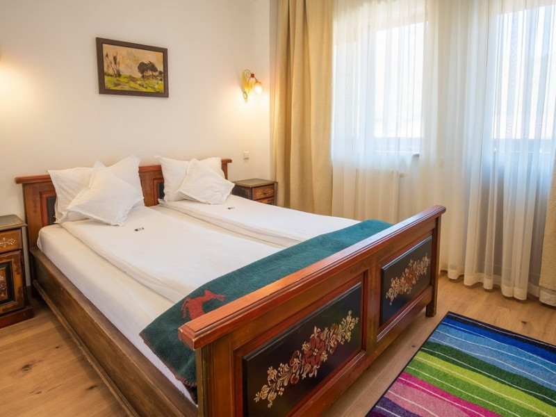 Camere duble matrimoniale sunt in numar de 4, au o suprafata de 14 mp, fiecare are iesire la balcon, cu vedere la padure.