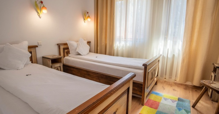 Camere duble twin sunt in numar de 14, au o suprafata de 14 mp, fiecare are iesire la balcon, cu vedere la padure.