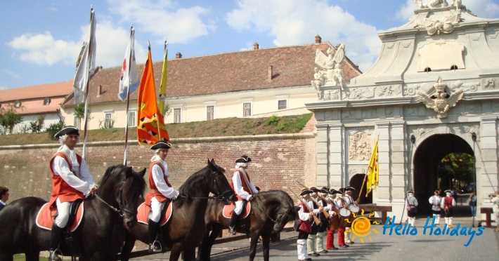Mic dejun. Propunem pentru aceasta zi sa vizitam impreuna Alba Iulia - Oraş al Marii Uniri şi mare centru istoric şi cultural. Nu există alt oraş care să sublinieze mai bine idealurile de unitate şi identitate ale românilor de-a lungul veacurilor. Istoria oraşului Alba Iulia îndeamnă la respect, consideraţie şi aducere aminte a oamenilor şi faptelor care au făurit şi menţinut naţiunea şi statul român. Vom vizita “Inima Orasului” – Cetatea Alba Iulia - unde se gasesc multe dintre atractiile orasului. Cetatea are forma de stea cu 7 colturi, inventata de Marechal Vauban, inginer al Regelui Ludovic al XIV-lea al Frantei. Zidurile cetatii au latimea de 3 metri, iar bastioanele au forma de sageata, acestea formand, de fapt, varfurile stelei. Sapte porti ornamentale permiteau initial accesul in curtile interioare.