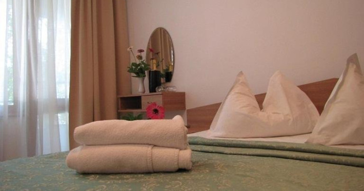Camere: Camerele sunt dotate cu TV, frigider si baie privata. Toate au balcon cu vedere la gradina.