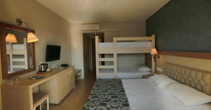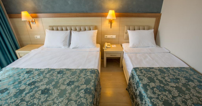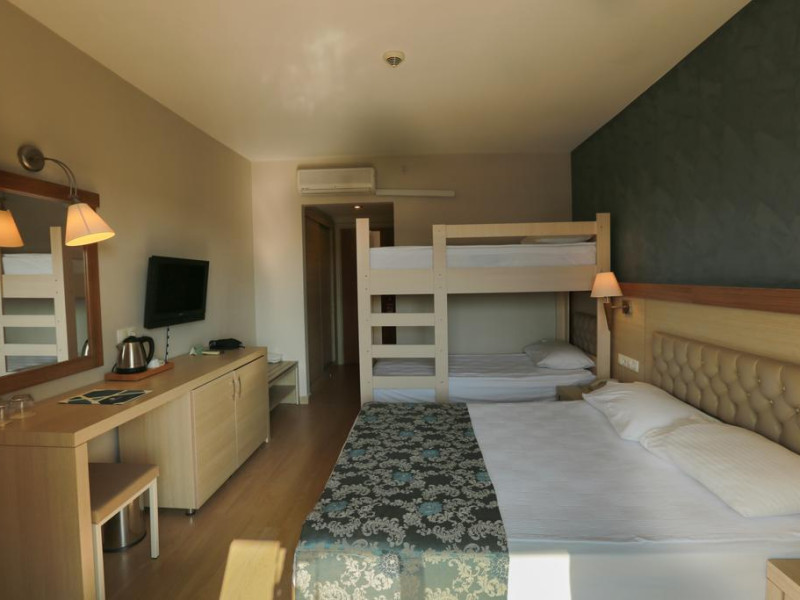 Oaspeții au la dispoziție serviciul de room service pentru a servi masa sau diverse băuturi. În camere există baie cu cadă sau duș prevăzută cu foehn. Camerele luminoase de la Side Aquamarin Resort & Spa sunt dotate cu aer condiționat, Tv și seif. Oaspeții au acces gratuit la serviciul Wi-fi în camere. Curățenia in cameră se face zilnic. Proprietatea oferă camere pentru nefumători.