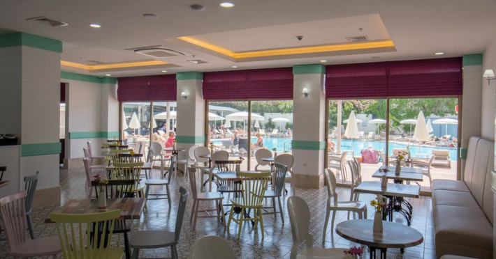 Side Aquamarin Resort & Spa se află la 6,2 km de Side și la 50 km de Aeroportul Antalya. La cerere proprietatea organizează transfer la/de la aeroport contra cost.