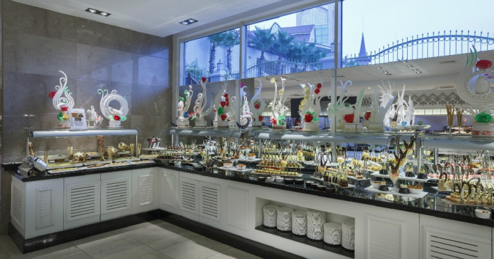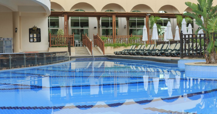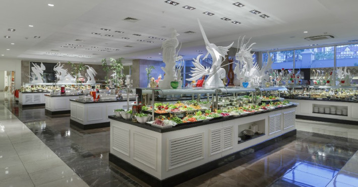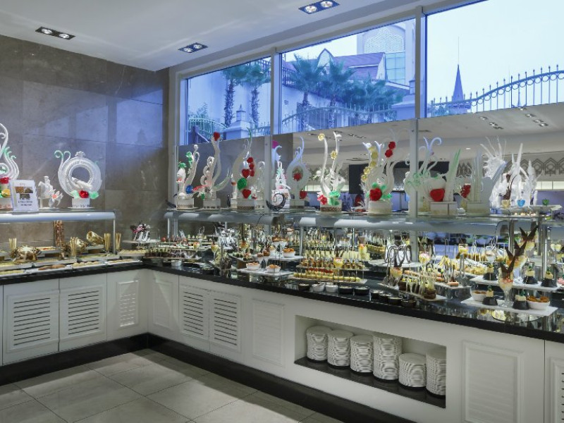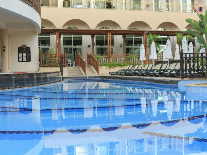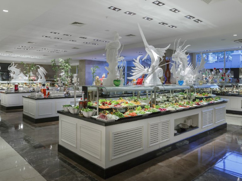 Hotelul pune la dispozitia oaspetilor: restaurant bufet, 4 restaurante a la carte, bar, bar la piscina, patiserie, 2 piscine exterioare, Jacuzzi, aquapark cu 3 tobogane, piscina pentru copii, piscina interioara, centru Spa, sala fitness, animatie, jocuri si activitati (volei pe plaja, baschet, tenis de masa, tir cu arcul, darts, boccia, sah, table, aerobic, gimnastica in apa), Wi-Fi gratuit, loc de joaca pentru copii.