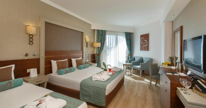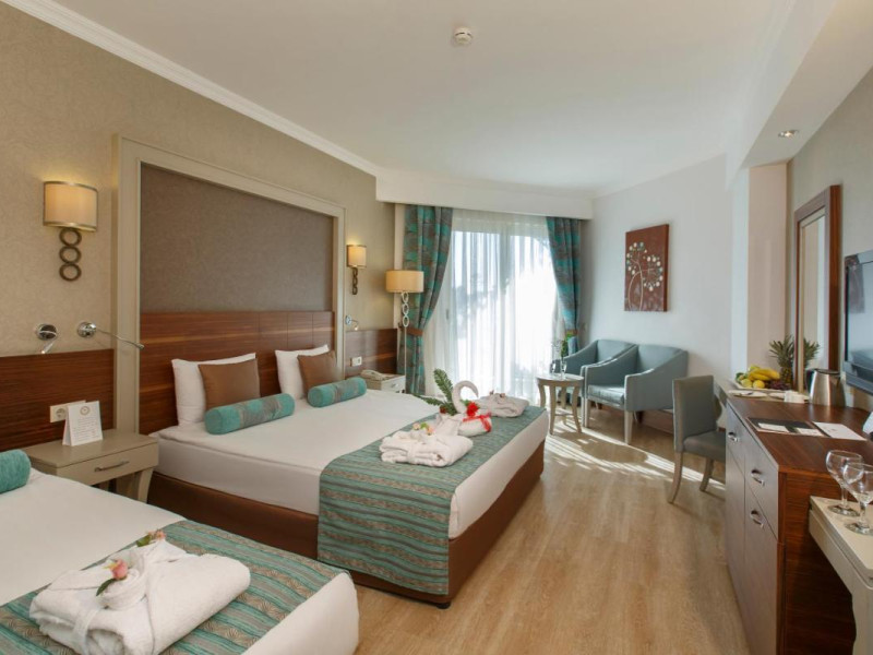 Localizare: hotelul este in apropiere de plaja publică din Evrenseki si la 49 km de Aeroportul Internaţional Antalya. Facilitati hotel: 2 piscine, WiFi, transfer de la și/sau la aeroport, acces imediat la plajă, spa și centru de wellness, sală de fitness, restaurant, parcare gratuită, bar, zonă de plajă privată. Dotari camere: balcon, WiFi gratuit, vedere la gradina, aer conditionat, baie privata, TV cu ecran plat, Terasa, Minibar. Servicii contra cost: serviciu de transfer, serviciu de curatatorie si calcatorie, snorkelling, scufundari, facilitati sporturi nautice, pescuit, echipament tenis, biliard, masaj, sala fitness, spa si centru wellness, sauna, jacuzzi. IMPORTANT: Descrierea hotelului se bazeaza pe detaliile disponibile la momentul pregatirii tarifelor pentru sezonul turistic ce urmeaza a se desfasura si are caracter pur informativ. Hotelul poate aduce modificari de structura, denumiri camere, tip serivicii incluse/neincluse si altele, fara a notifica in prealabil. Pentru informatiile oficiale va rugam sa consultati website-ul hotelului.Datorita dinamicitatii domeniului disponibilitatea ofertelor se modifica de la un moment la altul. De aceea ofertele sunt valabile in limita locurilor disponibile. Agentia nu este responsabila pentru eventualele neconcordante care pot aparea intre informatiile privind tarifele si alte detalii din site si informatiile primite in agentie. In aceste cazuri vor avea prioritate, intotdeauna, informatiile primite in agentie.