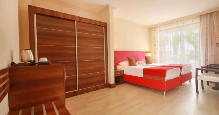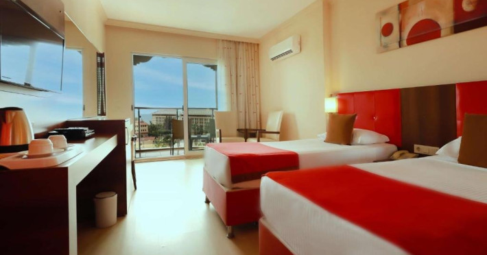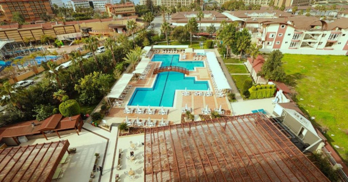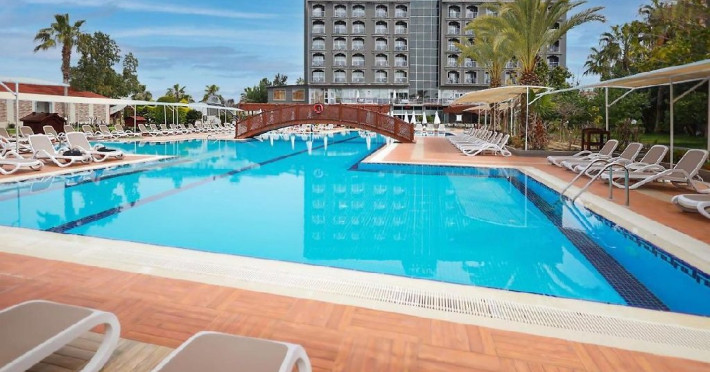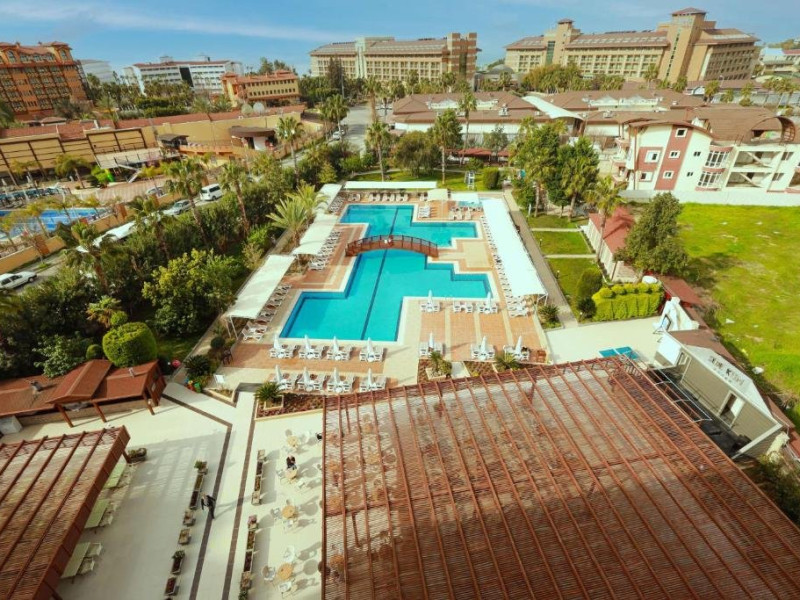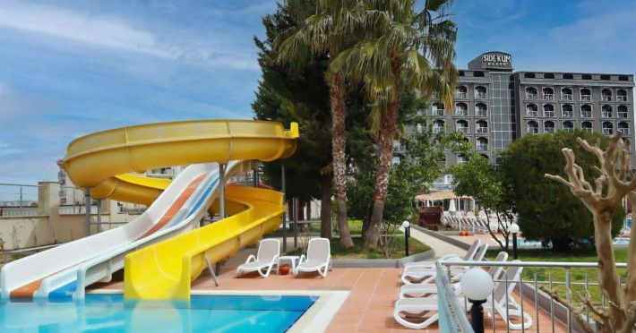 Descriere: Hotelul este situat la 10 minute de plaja cu nisip si doar 5 km de centrul orasului Side. Mai mult decat atat, hotelul dispune de club de noapte, piscina cu tobogane si facilitati spa.Localizare: Hotelul este localizat la 400 de metri distanta de plaja, la 5 km de Side Museum, 67 km de centrul orasului Alanya, 67 km de Antalya Airport si 111 km de aeroportul Gazipasa Alanya.
