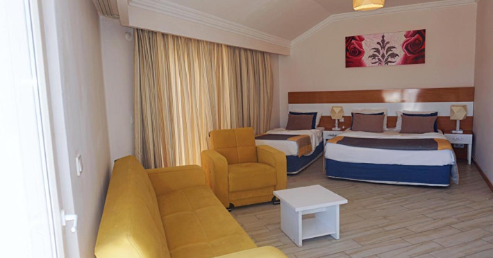 Camerele hotelului sunt de tip DBL, Family. Toate camerele hotelului sunt dotate cu aer condiționat și TV, prosoape, hartie igienienica, dus sau cada, uscator de par