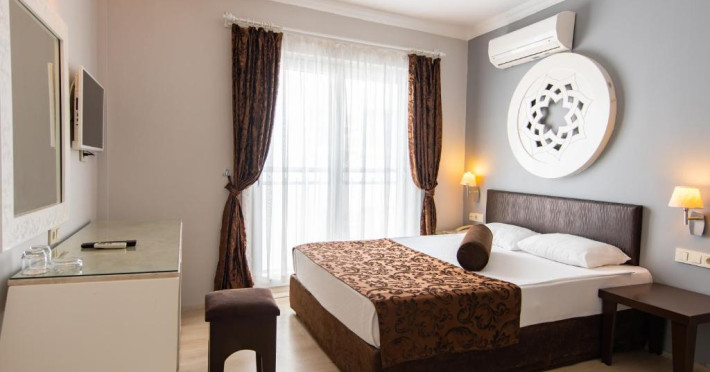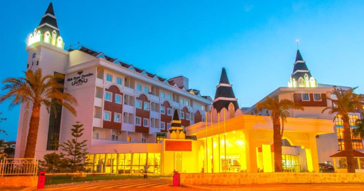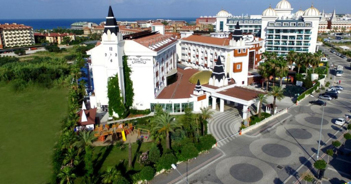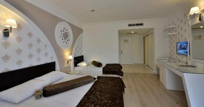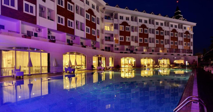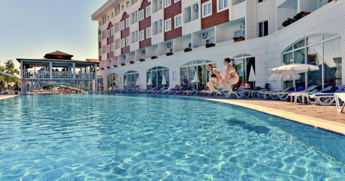 Facilitati: Anul constructiei - 2006, Anul celei mai recente renovari - 2011, Anexa(e) - 1, Numar etaje (cladirea principala) - 5, Numar etaje (anexa) - 5, Numar total camere - 269, Hotel , Visa, MasterCard, Aer condiționat in zone publice, Recepție 24 de ore, Facilități de schimb valutar, Acces lift, Magazin, Grădină, Internet prin cablu, Serviciu de spălătorie cu taxă, Terasă la soare, Restaurant, Zonă pentru nefumători, Snack bar la piscină, Aer climatizare in restaurant, zonă de inot pentru copii, șezlonguri, umbrele de soare, program de divertisment pentru adulți, lounge cu TV, sală de jocuri, club de noapte, saună, baie de aburi, masaj cu taxă, mic dejun tip bufet, pranz tip bufet, cină tip bufet, tenis de masă, volei pe plajă, Piscină / snooker cu taxa, Darts, Centru oraș - 6500 m, Cea mai apropiată stație de autobuz / metrou - 10000 m, Plaja - 600 m, Teren de golf - 38000 m, 1 Amfiteatru/Muzeu lateral - 6500 m, 2 Cascade Manavgat - 1300 m Amfiteatrul 3 Aspendos - 26000 mts, ANTALYA - 62 km