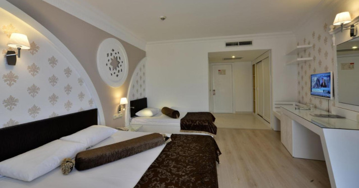 Locație: La doar 350 de metri de plajă, cu nisip fin, acces privat la mare, Side Royal Paradise Hotel se bucură de o locație privilegiată. Ultima renovare a avut loc în 2021. Distanțe: Aeroportul Antalya: 57 km Side: 5 km Manavgat: 12 km Stație Taxi-Autobuz: 5 km Concept: All Inclusive Dotări Standard ale Camerelor: Sistem electronic de închidere a ușilor Aer condiționat individual Mini bar (apă, apă minerală - reumplere o dată pe zi) TV LCD, canale HD locale și internaționale Seif Telefon Internet wireless Uscător de păr Baie cu duș Balcon Podea laminată Alimentație și Băuturi: Restaurante: Restaurant principal, restaurant à la carte, restaurant de snack la piscină, restaurant de snack pe plajă. Baruri: Lobby Bar, Pool Bar, Beach Bar. Orar Funcționare Restaurante și Baruri: Mic Dejun: 07:00 - 10:00 (Restaurant principal) Late Breakfast: 10:00 - 10:30 (Restaurant principal) Prânz: 12:30 - 14:00 (Restaurant principal) Cină: 19:00 - 21:00 (Restaurant principal) Restaurant à la Carte: 19:00 - 21:00 (Bucătărie otomană și italiana, o dată pe sejur la șederi de minim 7 nopți) Divertisment și Activități: Animație Nocturnă: Spectacole și evenimente de divertisment. Animație Ziua - Activități Sportive: Fitness, biliard, activități acvatice, volei pe plajă, etc. Piscină și Plajă: Piscină exterioară: 610 m2, adâncime 1.40 m, piscină pentru copii inclusă. Piscină Aqua: 40 m2, adâncime 1.40 m, cu 2 tobogane de apă. Plajă: La 200 m de plajă cu nisip fin, serviciu de transfer disponibil. Servicii Gratuite: Mic Dejun, Late Breakfast, Prânz, Cină, Supă de Noapte. Mini Club (grup de vârstă 4-12 ani), Mini Disco, Parc pentru Copii. Programe de animație și activități. Servicii Contra Cost: Băuturi de import, băuturi îmbuteliate. Servicii de masaj personalizate, îngrijirea pielii, spumă de masaj, peeling. Sporturi nautice motorizate și nemotorizate, închiriere de mașini, etc. Alte Informații: Acces la internet wireless gratuit în toate camerele, zonele publice și pe plajă. Limbi vorbite: Engleză, Germană, Rusă, Turcă. Check-in la ora 14:00, Check-out la ora 12:00. Hotelul își rezervă dreptul de a modifica orarele de funcționare și activitățile fără notificare prealabilă în funcție de condițiile sezoniere și meteorologice. Sistemul de climatizare este operat în funcție de sezon și condițiile meteorologice. Carduri de credit acceptate: Visa, Mastercard. Hotelul poate ajusta conceptul pentru evenimente MICE și grupuri închise. Grupurile pot să nu aibă acces la restaurantele à la carte.Info