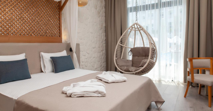 Camerele sunt dotate cu uscator de par, TV, AC, telefon, balcon, minibar, set pentru cafea si ceai.