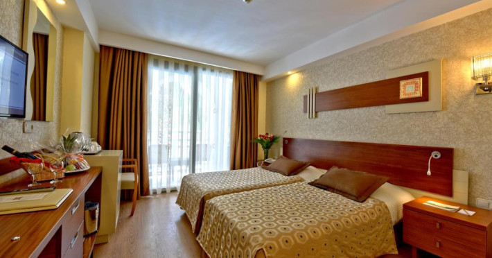 Localizare: Hotelul se afla pe malul mării în Side si la 64 km de Aeroportul Internaţional din Antalya. Facilitati hotel: Acest hotel ofera servicii si facilitati precum: recepție 24 de ore, seif, schimb valutar și lift, magazin, salon de coafura, bar, club de noapte, restaurant cu aer condiționat, serviciu de închiriere de biciclete. Serviciu de spălătorie și de asistență medicală si o parcare auto este disponibila pentru cei care sosesc la hotel cu masina. Oaspeții mai tineri pot beneficia de loc de joaca sau de a participa la activitati de club pentru copii.Hotelul oferă, de asemenea, un parc acvatic și un miniclub, restaurant principal care servește preparate internaționale, de dimineața până seara târziu, 3 baruri şi un bar la piscină. Facilitati camere: Toate camerele elegante oferă Wi-Fi gratuit, TV cu ecran plat, baie privată, cu duş şi uscător de păr. Facilitati pentru copii: piscina (exterioara), tobogan, parc pentru copii, 2 mini-club (4-7 ani; junior-club 8-12 ani) Plaja este privata cu nisip. La piscina si pe plaja: umbrelele, sezlongurile, saltelele sunt gratuite.Datorita dinamicitatii domeniului disponibilitatea ofertelor se modifica de la un moment la altul. De aceea ofertele sunt valabile in limita locurilor disponibile. Agentia nu este responsabila pentru eventualele neconcordante care pot aparea intre informatiile privind tarifele si alte detalii din site si informatiile primite in agentie. In aceste cazuri vor avea prioritate, intotdeauna, informatiile primite in agentie.