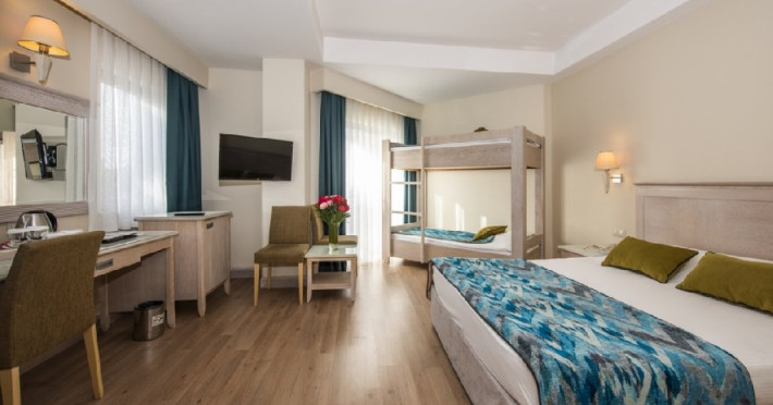Facilitati hotel: Oaspetii pot beneficia de restaurant principal, 2 restaurante A La Carte, baruri, piscina exterioara, programe de animatie si divertisment, centru fitness, sauna, aerobic, darts, boccia, tenis de masa, Wi-fi, parcare.