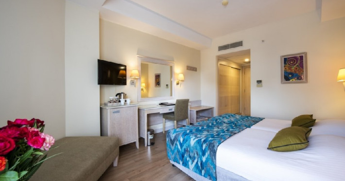 Dotari camere: Hotelul are un totatl de 228 camere, toate dotate cu aer conditionat, TV, telefon, Wi-fi, seif, minibar, balcon, facilitate pentru preparare ceai sau cafea, papuci, baie privata, balcon, halat (contra cost).