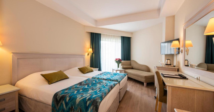 Localizare: Hotelul se afla in regiunea Side, la 1 km de Side si la 65 km de aeroportul din Antalya. Facilitati hotel: Cei care vor alege acest hotel pentru a isi petrece vacanta vor avea la dispozitie servicii si facilitatii precum: restaurantul principal, lobby bar, piscina interioara si piscina exterioara pentru adulti si copii, si o piscina exterioara cu tobogane pentru copii, centru SPA, club pentru biciclisti, disco, centru fitness, sauna, masa de tenis, biliard, bowling, internet wireless, internet cafe. Servicii contra cost: servicii medicale, spalatorie si curatatorie, coafor, telefon, fax, internet, magazine, rent a car, conexiunea internet WI-FI disponibila gratuit in zonele publice. Facilitati camere: Hotelul are un total de 228 camere repartizate in cladirea principala si in cladirile anexe.Toate camerele au baie privata cu cada, dus, uscator de par, aer conditonat split, mini bar , seif (contra cost), TV satelit si canale de muzica, balcon. Plaja privata se afla la 150 m de hotel, cu nisip, sezlonguri si umbrele de soare gratuite. Prosoapele de plaja sunt contra cost.Datorita dinamicitatii domeniului disponibilitatea ofertelor se modifica de la un moment la altul. De aceea ofertele sunt valabile in limita locurilor disponibile. Agentia nu este responsabila pentru eventualele neconcordante care pot aparea intre informatiile privind tarifele si alte detalii din site si informatiile primite in agentie. In aceste cazuri vor avea prioritate, intotdeauna, informatiile primite in agentie.