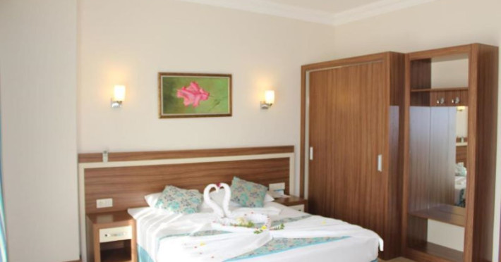 Hotelul, situat la o distanță de 700 de metri de plajă, se evidențiază prin facilități adaptate atât pentru familiile cu copii, cât și pentru tineri. O altă caracteristică notabilă este amplasarea sa strategică în proximitatea centrelor comerciale, piețelor, restaurantelor și zonelor de divertisment. Cu o inaugurare recentă în 2013, acest complex hotelier modern se află în districtul Evrenseki. Ansamblul este compus din trei blocuri înalte, fiecare având 5 etaje, oferind astfel o atmosferă contemporană și confortabilă oaspeților săi.Facilități camere