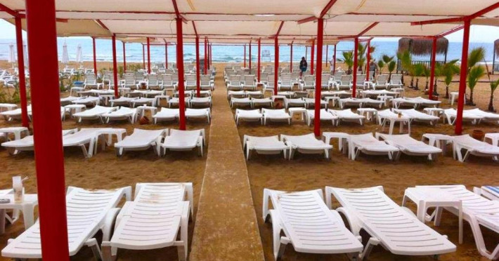 Plaja: plaja privata cu nisip, sezlonguri si umbrele gratuite