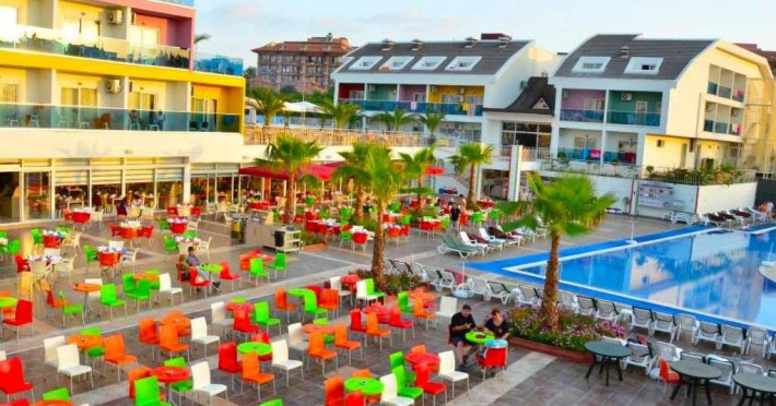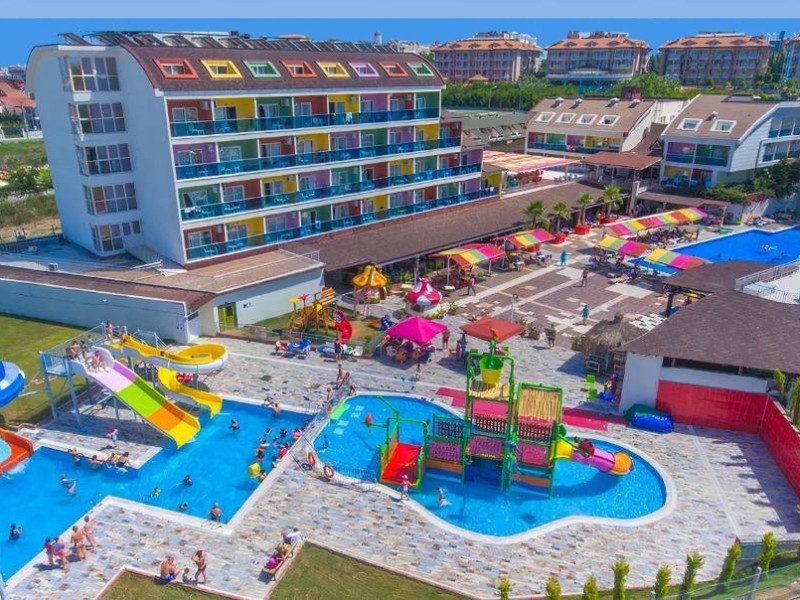 Descriere: Hotelul este situat la doar 600 de metri de plaja cu nisip iar aquapark-ul si diversitatea de facilitati fac ca sejurul familiilor cu copii sau al tinerilor turisti, sa fie memorabil.Localizare: Hotelul este situat aproape de mare, la 8 km de centrul orasului Side, 56 km distanta de aeroportul din Antalya si 115 km de aeroportul Gazipasa, Alanya.
